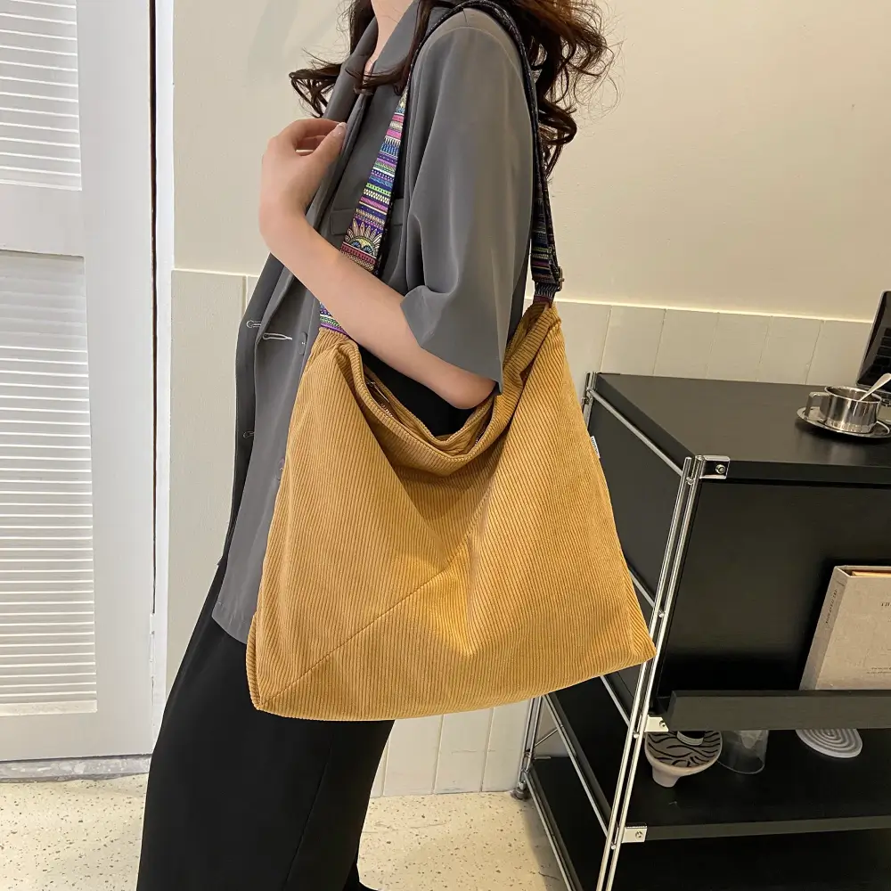 Corduroy Commuting Simple And Stylish Single-Shoulder Tote Bag
