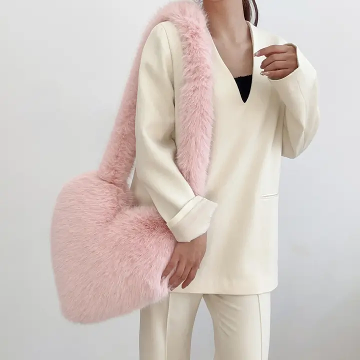 Step into the fashion realm where dreams and individuality intertwine. The sweet and cool fairy pink heart-shaped handheld/crossbody babe imitation fox fur bag makes a dazzling entrance. The charming pink hue, like the rosy clouds in the sky, tenderly wraps around every girl’s heart, recounting endless romance and sweetness. The unique heart shape, like a totem of love, injects liveliness and playfulness into the bag, making it the center of attention. The imitation fox fur material has a soft and smooth touch. When gently stroked, it feels like a cloud caressing the fingertips, showing a luxurious texture while still maintaining a cute and sassy babe style. Carrying it by hand reveals elegance and refinement, while wearing it crossbody unleashes an unrestrained personality. Whether paired with a simple white dress for a sweet date or combined with a cool and handsome denim outfit to roam the city streets, it can achieve a perfect match, helping you easily master the sweet and cool style, shining with a unique and brilliant light on the fashion stage and becoming a fashion darling that attracts everyone’s attention.
