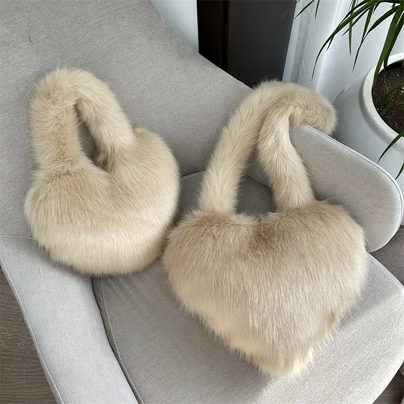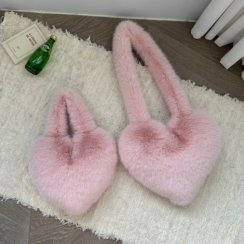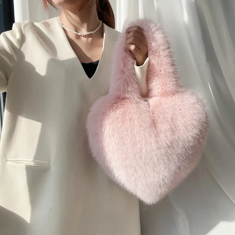 Sweet And Cool Fairy Pink Heart-Shaped Handheld/Crossbody Babe Imitation Fox Fur Bag